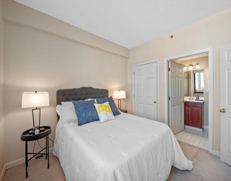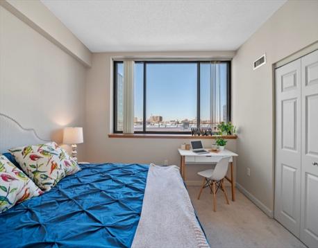 Convenience + Amenities + Parking = Easy City Living at the Glass Factory in East Cambridge! Rare opportunity to own 2bed/2bath condo on the 6th floor of a well run, elevator building. Ideal layout with excellent flow throughout the open living area & 2 bedrooms on either side of the living space, perfect for roommates, WFH, or privacy from guests. Sunny wall of windows, plenty of room to relax plus dining & open kitchen with breakfast bar for entertaining. Newer stainless appliances, dark wood cabinets & granite counters. Each king-sized bedroom has large closets & adjoining baths, en-suite primary with walk-in closet. New stackable washer/dryer in-unit & 1 outdoor parking space #65. Excellent amenities: on-site property manager, gym, business center, recreation room, package room, common laundry, & concierge evenings & Saturdays. Heating/cooling included in condo fee, utility bills are electric/internet/cable. Pet friendly! Super convenient location 1 block to T and so much more!!