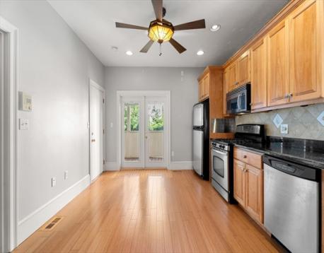 Spacious two bedroom - two bathroom with garage parking & a private entrance on a quiet residential street. Sunny eat in kitchen with lots of storage, primary bedroom with ensuite bathroom, second bedroom or office and a generously sized living room. Other details include in-unit laundry, hardwood floors, central AC & a large private porch off the kitchen. A heated driveway leading to the oversized deeded garage space, an extra large storage room in the basement and a shared yard with raised garden beds complete this pet-friendly, 8-unit, self managed association. Walking distance to restaurants, a city park & public transportation with easy access to MIT, Central, Kendall & Inman Square's.