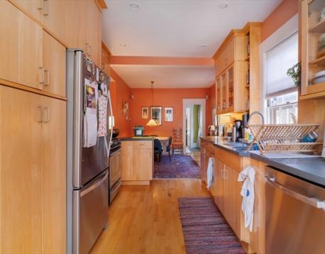 Set on a generous 5,019 sq. ft. corner lot with mature trees in prime Cambridgeport, this handsome c.1858 3-family building with 2 addresses offers exceptional potential for luxury single-family conversion, multi-unit development, or owner-occupancy with rental income. The largest owner unit at 215 Pearl Street is a charming 3-story townhouse-style home with an open kitchen and dining, 4 bedrooms, 2.5 baths, and direct basement access for possible expansion. It opens to a platform deck and side yard through the kitchen. The 174 Hamilton Street entrance serves two additional units: first floor 1-bed unit and upper 2 floors are a 2-bed unit. Enjoy beautiful grounds and gated driveway accessible from Hamilton St. creating a picture-perfect setting. Unbeatable residential and walkable location between Central Square hub and the Charles River, near parks, bike paths, MIT, Harvard, Kendall square and the BU Bridge.