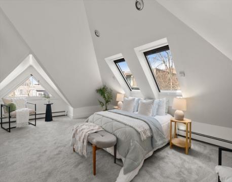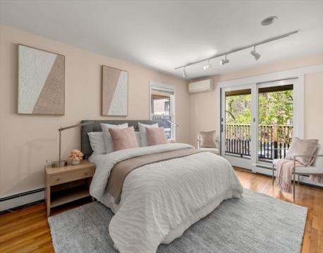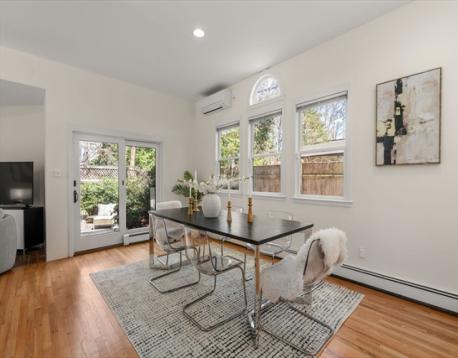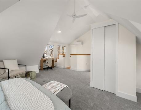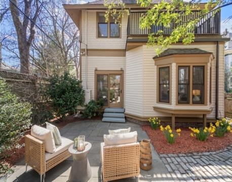 Rare Mid-Cambridge Carriage House with Outdoor Space & Parking! Unique circa-1900 carriage house, offering charm, privacy, and flexibility in a prime Cambridge location between Harvard Square, Central Square, Inman Square and close to Cambridge Hospital. Tucked off a quiet one-way street, this attached single-family is move-in ready with opportunity to personalize. Main level features open living space with high ceilings, kitchen with granite counters, sun-filled dining area, half bath, laundry, and direct access to a private fenced yard with bluestone patio and storage shed. Second floor offers a spacious primary bedroom with a private balcony, full bath with walk-in hydrotherapy tub/shower, and second corner bedroom with yard views. Skylit third floor has vaulted ceilings, new carpeting, and full bath, ideal for guests or an office. Other amenities include A/C, fresh paint, refinished hardwood floors, and off-street parking outside your door. This is a must see!