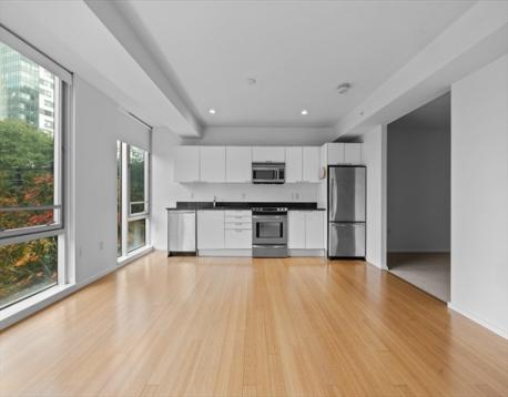 An opportunity not to be missed in the heart of Cambridge Crossing! The place to be in Cambridge with easy access to a plethora of shopping and dining options as well as convenient access to public transit, bike paths, walking trails, and outdoor park spaces. This junior one bedroom lives spaciously with a full wall of floor-to-ceiling windows overlooking the North Point park. Beautiful all times of the years, spring blooms, summer greenery, fall colors, and winter beauty. Efficient kitchen with white cabinets, granite countertops, and stainless steel appliances. The bathroom features a tiled bath/shower combination. Laundry is in the unit. The Tango building, part of the Sierra Tango Residences features 24-hour concierge. There is professional on-site property management. Garage parking off-site at Water street garage is included with the sale. This home has been freshly painted and is ready to occupy! A must see, priced to sell!