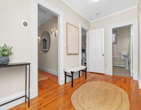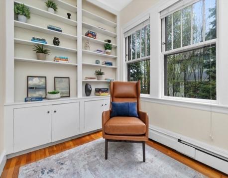Charming 1+ bed with office, private patio, and EV-capable GARAGE PARKING in a beautiful 1880 Queen Anne–style 3-unit building between Harvard & Porter Sq’s. Enter through a welcoming front veranda into a foyer and a home rich with classic detail—high ceilings, intricate moldings, and newly refinished hardwood floors. The open center hall offers space for a desk or reading nook. Spacious fireplaced living room with two bay windows, plus a separate dining room with built-in hutch and custom pantry. The galley kitchen features ample cabinetry and counter space with direct access to a private patio and garden. Generous bedroom with two oversized closets, plus a bright office/den with built-ins and great natural light. Additional features include garage parking, basement laundry, and storage. Tucked on a private cul-de-sac off Linnaean St near Mass Ave, close to shops, dining, Harvard Law/Yard, and walk to either Red Line T stops. Pets allowed!