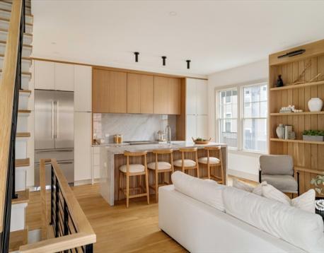 Baldwin neighborhood. Set within the reimagined shell of a Victorian, this front townhouse carries the presence of the original architecture while being entirely rebuilt within - an authentic reinvention. Three exposures bring in steady light, and the proportions feel easy and livable. The main level unfolds as an open sequence of kitchen, dining, and living, with a powder room and a private front porch that creates a natural transition between the home and the street. Upstairs are three bedrooms and two baths with well-placed laundry. The lower level adds a family room, bedroom, and full bath - flexible space for guests or work. The design is quietly contemporary, warmed by wood accents and a restrained palette. One-car parking. Positioned between Harvard and Porter Squares, with Red Line access at both and the commuter rail at Porter. Around the corner from Giulia, Moëca, Pavement, Simon’s, and Bagelsaurus, and close to Inman and Kirkland Village.