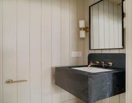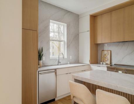 Baldwin neighborhood. Set well back from the street, this end townhouse offers a notably private, tucked-away feel while being entirely built from the ground up - a thoughtful extension of a handsome 1850s Victorian. Three exposures bring in steady light, and the proportions feel easy and livable. The main level unfolds as an open sequence of living, dining, and kitchen, with a powder room and a private back deck. Upstairs are three bedrooms with en-suite baths and well-placed laundry. The lower level adds a family room, bedroom, and full bath - flexible space for guests or work. The design is quietly contemporary, warmed by wood accents and a restrained palette. One-car parking. Positioned between Harvard and Porter Squares, with Red Line access at both and the commuter rail at Porter. Close to Inman and Kirkland Village, and around the corner from Giulia, Moeca, Pavement, Simon’s, and Bagelsaurus.