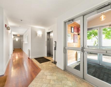 Don't miss out on this fantastic opportunity perched on the top floor of a modern elevator building, this stunning one-bedroom offers style, space, and unbeatable access to Fresh Pond and Danehy Park. Sunlight pours through a wall of windows, highlighting the open-concept layout—perfect for entertaining or relaxing at home. The sleek kitchen features cherry cabinetry, stainless steel appliances, and a breakfast bar that flows seamlessly into the dining area. Unwind in the spacious bedroom with two double closets, or step through elegant French doors to your private balcony. With soaring ceilings, maple floors, central A/C, and in-unit laundry, comfort meets convenience at every turn. Includes garage parking and a pet-friendly setting—don’t miss this exceptional home!