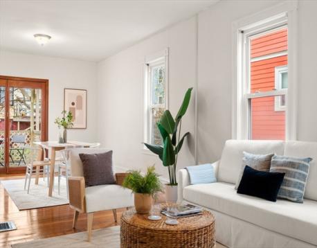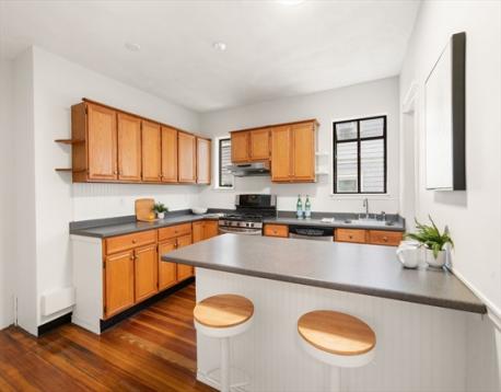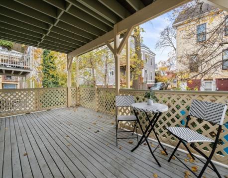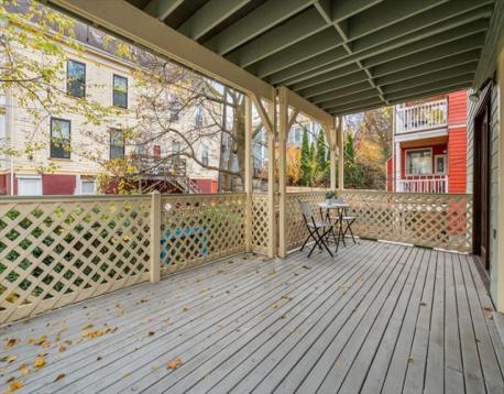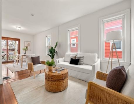 Welcome to 24 Cambridge Terrace. This quintessential 2 bedroom 1 bathroom condominium, is located on a quaint side street within minutes of bustling Porter Square shops and restaurants. This lovely home features an open modern layout with original period details and hardwood floors throughout. The spacious living room and dining area has double glass doors leading to an enormous back porch. This will be an additional living space in the warmer months perfect for entertaining guests. The inviting eat in kitchen has a breakfast bar, stainless steel appliances, gas stove and a full pantry. There are two nicely sized bedrooms and a full custom tiled bathroom. This unit has a wonderful flow with original hardwood floors throughout, an additional front porch and central heating and air conditioning.