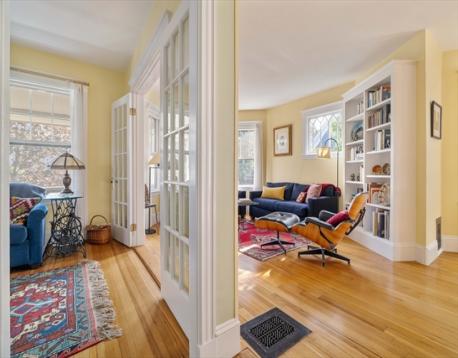 Light-filled top two floors of a classic Philly-style duplex in desirable Avon Hill, set on a corner lot along quiet Upland Road near Raymond Park. The main level features open living, dining, and den spaces with beautifully preserved period details that include hardwood floors, bay windows, built-ins, french glass doors, and a china hutch. Enjoy two private porches: one open overlooking the street, and a 3-season porch with views of the shared garden. The eat-in kitchen offers timeless style with white glass-front cabinets, gray Corian counters, and a table-height peninsula. Modern comforts include two-zone central air, an on-demand hot water heater, and off-street parking. Ideally located near Huron Village and Porter Square shops, cafes, and theaters, plus access to Fresh Pond trails, dog beach, and public golf. Commuter options abound with the Red Line and Commuter Rail nearby.