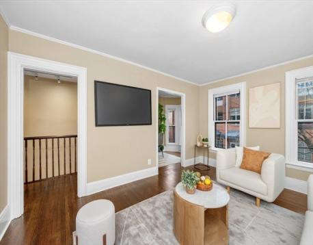 Nestled on picturesque Sacramento St.in Cambridge, this sun-filled 2-level condo is located in the highly sought-after Baldwin neighborhood, offering the perfect blend of historic charm and modern convenience. Set within a converted 1873 Victorian, the home features wood floors and classic architectural details that create a warm, timeless atmosphere. The main level includes a living room, dining room, sitting area, and an updated kitchen with birch cabinetry, stone countertops, and stainless steel appliances. Step directly onto an oversized private deck, ideal for outdoor dining and entertaining. A half bath and in-unit laundry add everyday ease. Upstairs, vaulted beam ceilings highlight the serene primary bedroom with a skylight, double closets, and storage, a full subway tile bath, a 2nd bedroom, and a versatile bonus room. Just minutes to Porter & Harvard Square, cafés, restaurants, shops, and the Red Line. This Cambridge condo for sale offers an exceptional location and lifestyle.