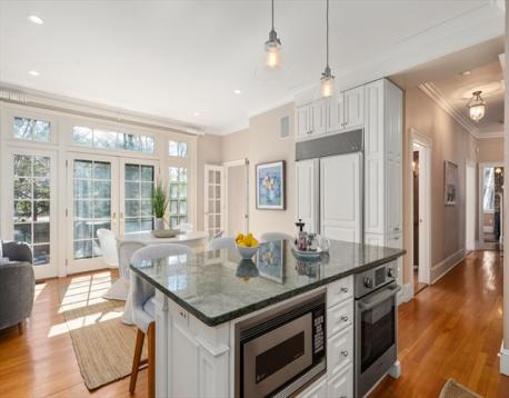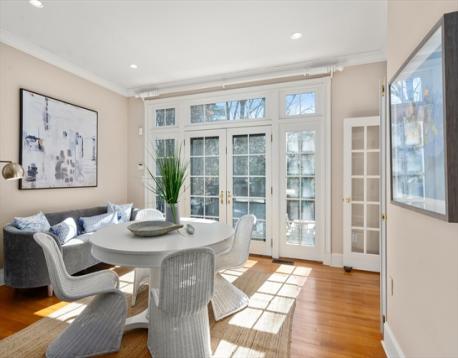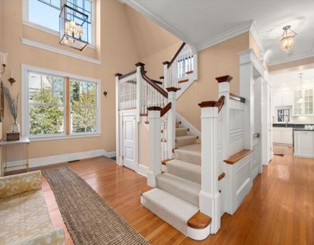 Tucked away on a pretty private way in Harvard Square, this elegant residence offers generously scaled rooms for living, working, and entertaining. A dramatic two-story foyer introduces the living room and library, each with a gas fireplace and custom built-ins. The dining room, also with a fireplace, opens through French doors to a beautifully landscaped, fenced backyard with gardens. The eat-in chef’s kitchen features high-end stainless-steel appliances and a dining area with French doors to the yard, plus a half bath on this level. Upstairs, the primary suite has a bay window, fireplace, custom walk-in closet, and four-piece bath. Two additional bedroom suites and laundry complete the second floor. The skylit top floor offers three more bedrooms and a hall bath. The lower level includes a family room, exercise studio, full bath, and second laundry room. Located just a few blocks away from the Harvard Quad and Cambridge Common. Easy access to Boston and beyond via Memorial Drive.