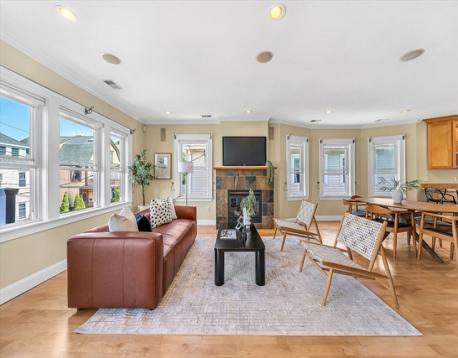 Sun-drenched 3-bedroom, 2.5-bath condo nestled on a quiet street in prime West Cambridge. The main level offers an inviting open layout with a custom kitchen featuring breakfast bar and wine fridge, seamlessly connecting to the dining area and living room with fireplace, bay windows, and hardwood floors. A sunny balcony provides the perfect spot for morning coffee or gatherings with friends. Two bedrooms and a full bath complete this floor. Upstairs, the primary suite feels like a private retreat with a fireplace, spa-like bath, and a sitting area ideal for a home office or reading nook. The walk-out lower level includes a private bedroom suite, perfect for guests or extended family. Enjoy one off-street parking space, shared backyard, and the peace of a residential neighborhood while being moments from Huron Village, Fresh Pond, Harvard and Porter Squares, and an array of cafés, shops, and public transit. A warm and versatile home ready to welcome its next owner.