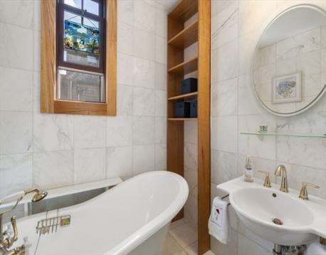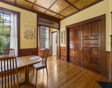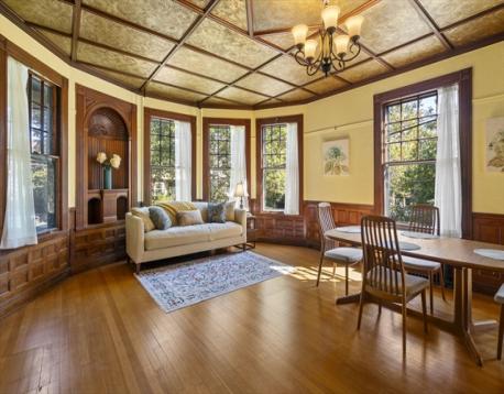 33 Washington Avenue is a historic property on beautiful Avon Hill. Originally constructed in 1887, the building was crafted by the esteemed architectural firm Hartwell & Richardson. The condo is on the first floor of this stunning mansion on Avon Hill. The living room and dining room are accented by a lincrusta covered ceiling, original wood paneling, sweeping bay windows facing Southeast and a stunning fireplace. Compact but well designed kitchen. Beautiful pocket doors lead into the primary bedroom with large closet with custom built-ins and full bath ensuite. The condo is a part of a 6 unit, owner occupied association with a deeded parking space and an extra space for guests. Recent updates are a new roof, furnace, shingles and window trim. Close to shops and restaurants on Mass Ave, Porter Square, the commuter rail, subway, Raymond Park, Lesley University and Harvard University. Great opportunity for investors, empty nesters, or those of you seeking a Cambridge pied-a-terre
