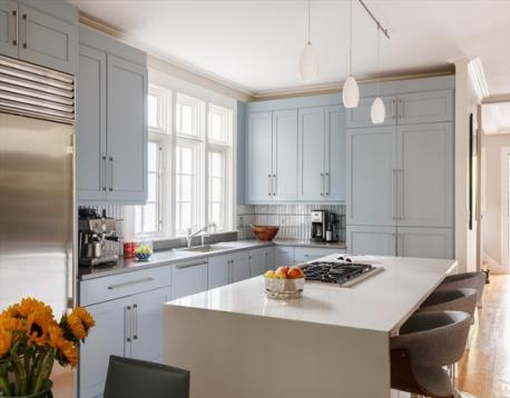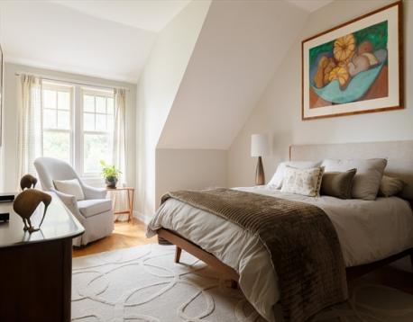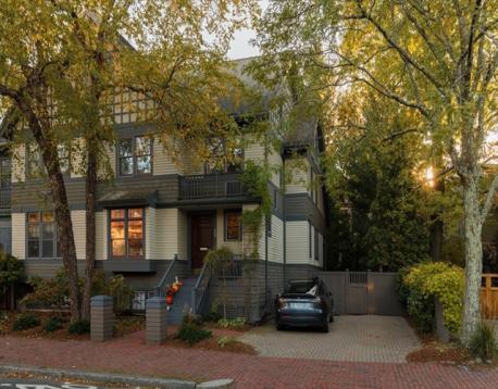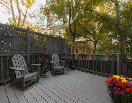 Generous in scale and refined in design, this attached SF offers space and livability rarely found in an urban setting. Four finished levels are connected by a continuous stairwell, creating a distinct yet cohesive layout. The main level—anchored by white oak floors, nine-foot ceilings, and a wood-burning fireplace—flows seamlessly between living, dining, and kitchen spaces. The 2019-renovated kitchen features quartz counters, a waterfall island, Thermador appliances, and a Sub-Zero refrigerator, with direct access to the expansive deck and private fenced garden/yard. Upstairs, the primary suite includes a walk-in closet, dressing room, and spa-like bath, joined by a generous en-suite bedroom and laundry. The top floor offers two bedrooms with cathedral ceilings and a shared bath. Flexibility abounds in the lower level with two large living spaces—one previously used as a media room—plus a wet bar and full bath. Two off-street parking spaces with EV charger complete this rare offering.