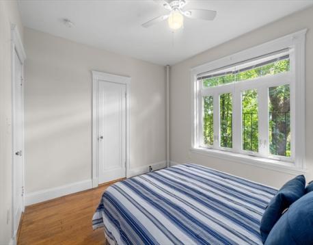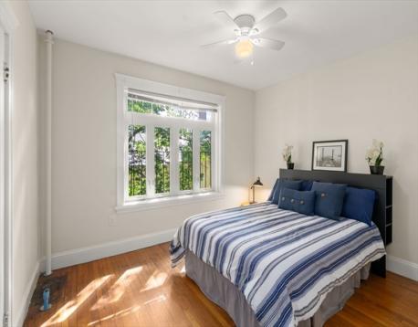 This condominium offers an exceptional opportunity to own a piece of classic architecture in a vibrant city setting. Built in 1920, this residence presents a unique blend of historical charm and modern urban living. The 2nd floor one-bedroom condo in a Harlow 61 unit brick building in the coveted Radcliffe area. With a welcoming courtyard and four distinct entrances. The home features beautiful period details, including a mantel fireplace framed by built-in bookshelves, generous room proportions, and high ceilings. Oversized windows provide excellent light, foliage views, and cross-ventilation. The spacious bedroom enjoys morning light through large windows. A wide entry hallway offers versatile space for storage or a home office. The compact kitchen is thoughtfully designed with ample cabinetry and a cozy breakfast nook. Recent updates include new windows in the bath, kitchen, and bedroom and a new roof on the building. Well-managed association. Common Laundry and shared storage.