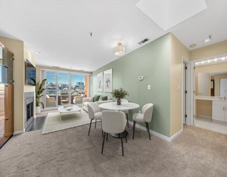 Available for the first time in 30 years! Exceptional PENTHOUSE unit at the highly sought-after Thomas Graves Landing overlooks the Lechmere Canal and offers a rare blend of privacy, service, and stunning water views. Enjoy garage parking, extra assigned storage, elevator access, 24/7 concierge, and your own private balcony with a southwest-facing panoramic views and scenic walking paths right outside your door. Inside, big picture windows, stunning skylights, brand-new carpet, stainless steel appliances, exceptional closet space, and an elegant wood-burning fireplace. Resort-style amenities include a beautiful and recently renovated common entry, fitness center, locker rooms with showers, sauna, function room, and an outdoor swimming pool with a jacuzzi. Additional perks EV charging in the garage and ample guest parking at the front of the building. Great location near the Charles River, Kendall Square (Red Ln), Lechmere (Green Ln), Cambridge Crossing, and Bunker Hill (Orange Ln).