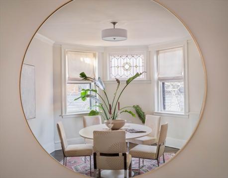 Set on a sleepy side street in the Baldwin neighborhood, this sophisticated top floor two bed, one bath condo has been masterfully restored with an artisan's eye - every surface considered, every finish intentional. The gracious living room anchors the home with high ceilings, south-facing windows, and a stunning fireplace surround in honed black mist granite. The generous dining room retains its period charm with original built-in cabinetry and a stained glass bay window. The kitchen is pure intention: custom inset cabinetry with a hand-painted finish and walnut interiors, honed Carrara marble counters and backsplash, and high end appliances like Miele. The bathroom is a timeless retreat - Waterworks throughout, radiant Carrara floors, a custom walnut storage cabinet. In-unit laundry, basement storage, rented garage parking, common patio, and a stable, well-run association. Blocks to Porter and Harvard Squares, with transit, shops, restaurants, and bookstores just outside your door.