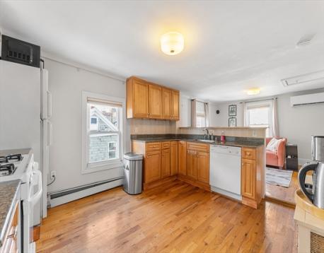 Discover this sun-filled top-floor 3-bedroom condo at 42 Jefferson St #3, offering a spacious open layout and hardwood floors throughout. Renovated in 2007, the home features an eat-in kitchen with gas stove, in-unit laundry, and a flexible third bedroom ideal for a home office. Enjoy a deeded garage parking space plus exclusive use of the full right side of the driveway. The tiled full bath is generously sized, while pull-down attic access and a dedicated basement area provide exceptional storage. Recent updates include replacement windows, a 2024 heat pump system for efficient heating and cooling, a 2018 hot water tank, and new spray foam attic insulation (2023) for enhanced comfort. With a Walk Score of 96 and just 0.6 miles to Union Square Station, you’re moments from Lechmere, Kendall, Inman Square, shops, dining, and parks.
