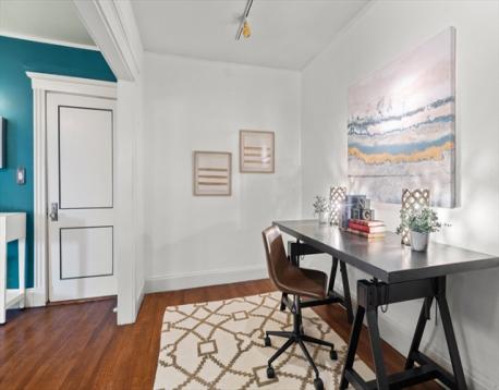 On an upper level of this historic Harlow building sits this spacious unit with a flexible layout for entertaining guests and working from home. Through the foyer, the spacious living room has a fireplace and French doors to the office/guest room. A large dining room is adjacent to the kitchen with white cabinets, gas cooking and stainless steel appliances. The bedroom provides 2 walk-in closets and an en-suite bath. There's also a sitting area/study alcove. Professionally managed by the reputable Renzi Bulger group, amenities of this pet-friendly & smoke-free association include a building superintendent, bike storage, a laundry room, assigned storage bin, and sprawling grassy common yard with a garden. Located just a few blocks to awarded local hotspots such as Dear Annie, Simon's, Bagelsaurus, Honeycomb Creamery, Barcelona, Giulia, The Abbey, and more. Located within a half mile radius of the Porter T Station, Harvard and Lesley campuses.