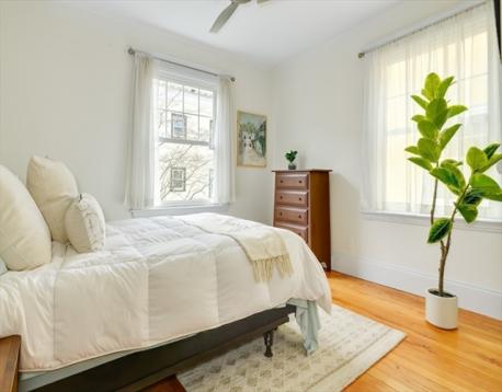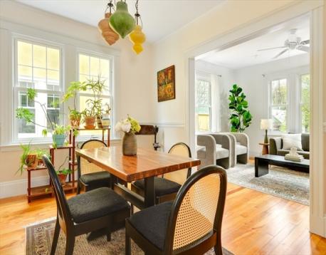 Nestled in Cambridge’s Baldwin neighborhood, this oversized one-bedroom condominium sits in one of the city’s quieter, more residential pockets, ideally set on a one-way street. Located within a three-unit HOA, the home offers 8.5 ft ceilings, oak flooring, and a well-proportioned floor-through layout with an open, expansive living and dining room that feels both elegant and airy. The renovated kitchen is outfitted with updated cabinetry, countertops, gas cooking, a vented range hood, and a windowed pantry, along with in-unit laundry for added convenience. The bathroom has also been thoughtfully renovated with clean, modern finishes. At the rear, both the kitchen and generously sized bedroom overlook a lush, shared garden—an uncommon and enchanting backdrop that brings a sense of calm and privacy. A separate study adds flexibility without compromising the main living spaces. Just a short distance to Harvard and Porter Squares, with easy access to shops, cafés & transit along Mass Ave.