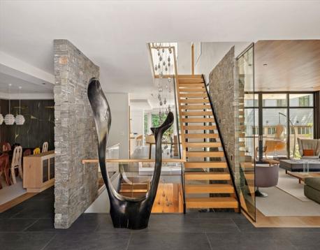 A gated modern residence of contemporary craftsmanship and calm precision, offering over 11,000 SF of living space on coveted Avon Hill. Light pours through vast panes of glass, dissolving the boundary between interior and landscape. Multiple terraces, a sunken patio with a two-sided fireplace, and a roof deck with its own fireplace create a seamless connection between house and garden. The private backyard, with its pool framed by mature trees and layered plantings, offers both openness and seclusion. Inside, warm natural materials and refined detailing define every room, from interconnected living spaces to quietly composed private rooms above. The primary suite is a sanctuary of light and serenity, with a vaulted ceiling, integrated storage, and a bath finished in stone and oak. The expansive lower level includes a guest or au pair suite, providing flexibility and privacy. Complete with two-car garage, advanced systems, and rare privacy just outside Harvard Square.