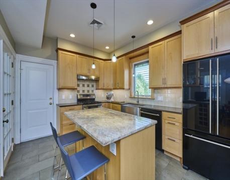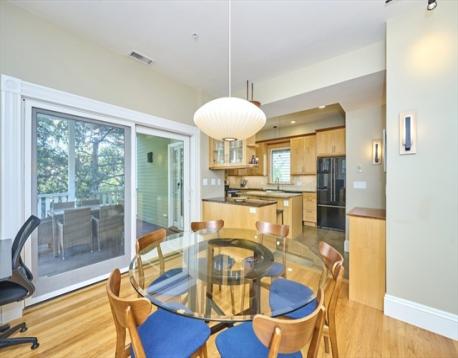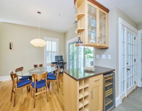 Move right in and enjoy a fully updated home with all the necessary amenities. This appealing space has an open living/dining/kitchen area that opens by french doors on two sides to a covered deck that is so large it feels like another room! Sunny & bright with southwest exposure, the high ceilings make the space feel both spacious and elegant. Period details give the home warmth and charm & include wide pine flooring, wood banister, stained glass window & multiple french doors. Both baths are tiled & the designer kitchen has huge island, bar peninsula, & SS farmers sink. Enjoy central a/c, radiant heated floors & in unit laundry. Off street parking for 1 car & great storage area in the basement for all your excess. Three unit, pet friendly & all owner occupied association. Desirable Cambridgeport location, steps from the Charles River, offers accessibility to Whole Foods, Trader Joes and easy commuting to Boston via Mass Pike, the Central Sq. Red line or biking.