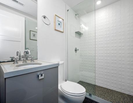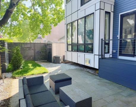 Tucked away from the street, this free-standing contemporary home, built in 2018, offers privacy and modern luxury in Cambridgeport. Thoughtfully designed, it features an open living/dining area with a gas fireplace and direct access to a private stone patio and yard. The sleek European-style kitchen includes Thermador appliances and stone countertops. A custom staircase with glass panels leads to two spacious second-floor bedrooms—one with a balcony—a full bath with double vanity, and in-unit laundry. The top-floor primary suite feels like a treetop retreat with two walk-in closets, a spa-like bath, and two balconies. The finished lower level, with separate entrance, includes a family room with wet bar, guest bedroom, and full bath. Ideally located near Central, Harvard, and Kendall Squares, Mass Ave shops and restaurants, and the Charles River, this stylish home blends comfort, convenience, and quality craftsmanship.
