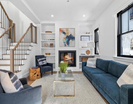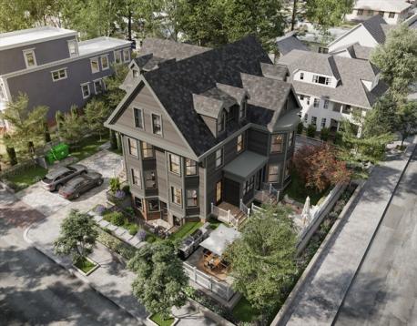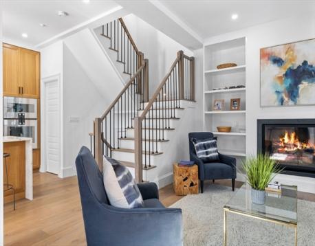 The Oxford Street Residences: a distinguished collection of three luxurious homes nestled in the heart of Cambridge's esteemed Baldwin Neighborhood between Harvard and Porter, these residences offer the utmost convenience with fine dining, cultural attractions, and upscale shopping just moments away. These residences epitomize the perfect fusion of timeless elegance and contemporary living. This expansive home boasts 3,096 square feet; all thoughtfully planned and designed to enhance and complement an exceptional living experience. The grandeur is evident from the moment you step inside, with tall ceilings, expansive rooms, and an abundance of natural light that beautifully accentuates the superior craftsmanship throughout. Unit One is a four-bedroom, three-and-a-half bathroom corner townhouse spanning four levels. Featuring an oversized chef's kitchen, double-faced gas fireplace that gracefully divides the living and dining rooms, promising intimate evenings and stylish entertaining.