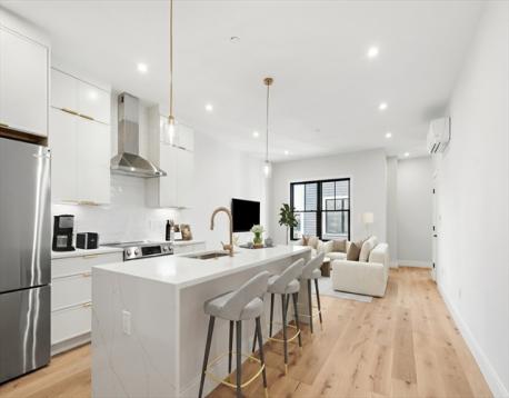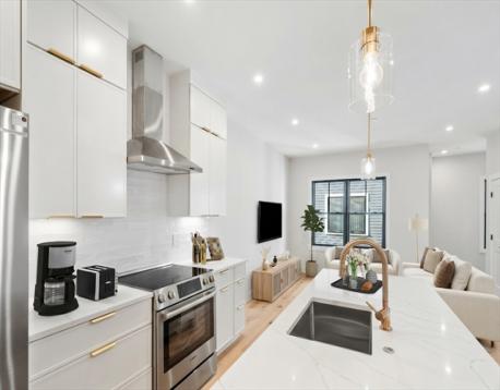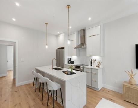 New construction 2 bedroom Penthouse. The last Unit available at 747 Cambridge Street!, 2025 new construction elevator building offering a cutting edge collection of 8 luxury homes crafted with the finest materials & offering unparalleled luxury. The meticulously designed layout maximizes every inch w/ the sprawling open concept kitchen living dining arrangement. The beautiful kitchen features custom cabinetry, pro series ss appliances, 9 ft island with bb bar, & beautiful quartz countertops. 10 ft Ceilings & great light allow for a wide open living feel & amplify the sharp luxury finishes The spacious primary bedroom features large closet. The spa like bathroom has stunning finishes is conveniently located just off both bedrooms. Amazing commuter location, The building & entry sit on beautiful tree lined street, while just around the corner from dozens of restaurants shops and cafe's! Two large bedrooms! Offers reviewed 4/28 6 PM