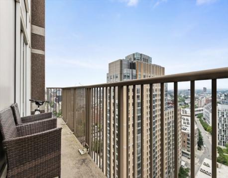 Spacious penthouse with double balcony and stunning sunset views.This beautifully finished 23rd floor unit features oak wood flooring throughout and an open, airy layout that maximizes natural light. The kitchen is equipped with cherry wood cabinetry, granite countertops, stainless steel appliances, and a breakfast bar, perfect for everyday living and entertaining. The bathroom offers a granite vanity, a tiled bathtub, and a glass enclosure. An ideal home for buyers seeking style, comfort and elevated city living. Price includes one valet parking! Washer/dryer in unit. UNIT LEASED THROUGH 8/31/26. Building amenities include 24/7 concierge, valet parking, on-site management, gym with lap pool, movie room, entertainment room. Beautiful North Point Park in front of the building. Steps to Cambridge Crossing, Charles River, Galleria Mall, shops and restaurants, T, MGH, MIT. Short walk to Charlestown, Wholefoods and N.End via walk bridge. PET FRIENDLY!