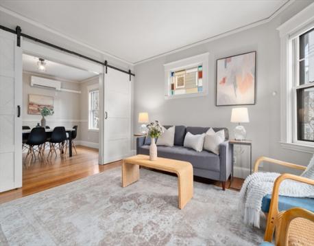 Welcome to this modern and stylish well-maintained property in a desirable North Cambridge neighborhood, just moments from the train station. This first floor unit offers a thoughtfully designed kitchen equipped with an induction stove and a Bosch dishwasher, ample cabinet space and a dedicated pantry and storage area.The LR and DR flow seamlessly for easy entertaining. The home features high ceilings, well-laid-out bedrooms, a beautiful updated bathroom, two linen closets, and abundant closet space throughout. The unit comes with a newer mini-split heating and cooling system, Navien water heater, updated electric panel, one car parking with a designated EV charger, brand new back porches, designated yard space and large basement storage. This three-unit building is in excellent condition! Nothing to do but move in. Located in a highly desirable neighborhood offering easy access to subway, nearby shops, cafés, public school, Fresh Pond walking, and 1 mile to Davis Square.