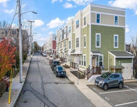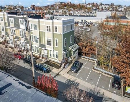 Stunning corner end-unit penthouse bi-level with 1,093 square feet, three bedrooms, one and a half bathrooms, and two deeded parking spaces. Sun-filled with three exposures at the end of a dead-end street. The main level offers hardwood floors, recessed lighting, and an open kitchen and living area with stainless steel appliances, gas cooking, a pantry, and a private balcony overlooking the Chelsea Greenway. The half bath is tucked next to the laundry room, which also contains the newer Goodman heating system and Navien on-demand hot water tank. Upstairs has three bedrooms and a fully renovated bathroom with a custom tiled glass shower, bench seating, and a window. Professionally managed. Prime location in the Box District just one block to the Silver Line, and close to the Commuter Rail, bus routes, Blue Bikes, parks, dining, shopping, Chelsea Commons, Mystic Mall, and the Apollinaire Theatre, with the Greenway perfect for walking, biking, and dog walking.