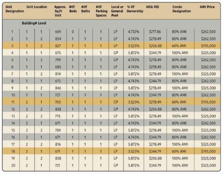 NEW CONSTRUCTION ALERT: DEED RESTRICTED AFFORDABLE 1 BED CONDO AVAILABLE. Many modern features. Units with open concept design/modern kitchen design, bright living spaces with oversized windows. Buyers must fill out application, have a non FHA/VHA conventional fixed pre-approval letter, be a first time homeowner, not have assets higher than $155,000, and be under the 100% AMI Income levels: 1 person $112,650 2 persons $128,750. Application Deadline is May 31st, 2026.