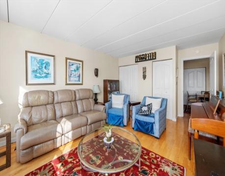 Welcome to waterfront living at this spacious 2 bedroom/2 bath condo in Chelsea’s sought-after Admiral’s Hill just minutes to downtown Boston. This sun-filled home features an open-concept living/dining area with hardwood floors and sliders to a private patio/balcony with Tobin Bridge and Boston skyline views. Split bedroom layout provides ideal privacy. Spacious primary suite features double closets, and an en-suit bath. Second bedroom easily fits a king-size bed. Additional highlights include in-unit laundry, central air and ample storage. This pet friendly, elevator building includes professional management, 2 tandem garage parking spots and extra storage. Enjoy association pool and direct access to waterfront Mary O’Malley Park. Easy access to highways and public transportation. Convenient to Market Basket, Starbucks and more.