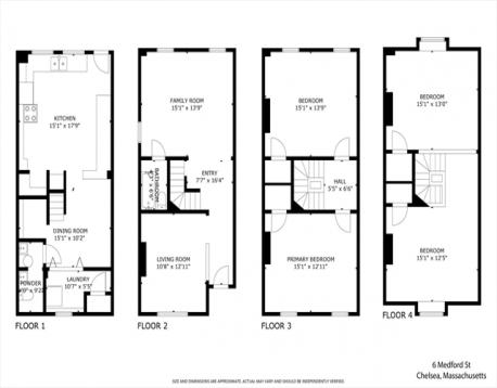 Opportunity calling! Bring your tools and your vision to this classic brick row house in Chelsea's historic Waterfront neighborhood, right in the center of all that Chelsea has to offer. 4 levels of living space, 1,760 square feet, exposed brick, wood floors, & skylight present lots of design possibilities. Walkout to a private back yard. Less than 1/2 mi in one direction brings you to Chelsea Square's cafes, restaurants and shops. Up the hill you'll find the waterfront gem, Mary O'Malley State Park with its Boston skyline views. You can't beat the commute. It's less than 1/2 mi to buses to Haymarket and Logan Airport. The commuter rail, less than a mile away, whisks you to North Station in less than 15 minutess. Walk Score "84 Very Walkable".