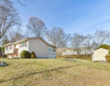 Welcome to 10 Paulette Drive in Danvers! This charming split-entry offers 3 bedrooms, 2 full baths, and 1,738 sq. ft. of comfortable living. The living and family rooms feature bay windows and cozy carpeting, while the kitchen boasts upgraded veneer counters and stone tile flooring. Hardwood floors and ceiling fans flow through the bedrooms for year-round comfort. Outside, enjoy a rolling, beautifully maintained yard, a patio, and a storage shed. The one-car garage with automatic door and extra storage is in excellent shape. Updates include a newer roof with ridge vent and gutters. Conveniently located near shopping, parks, trails, and highway access, this home blends comfort and lifestyle in a sought-after Danvers neighborhood—make it yours today!