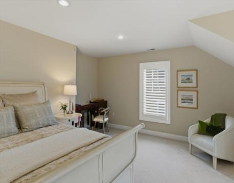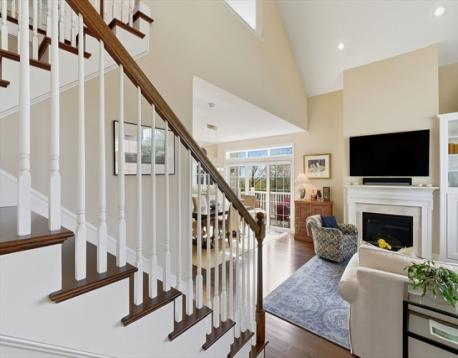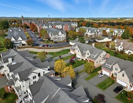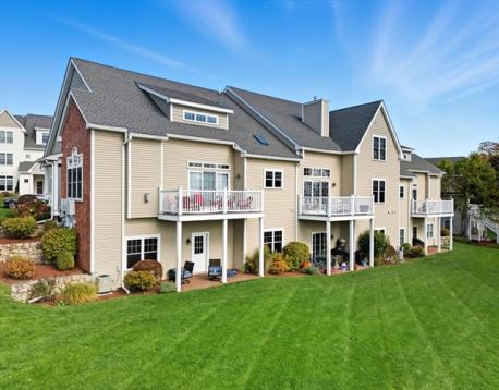 This isn't just another condominium—this is an exceptional find. Built in 2016, this unit offers a superb floor plan rare within the community, plus extensive custom upgrades throughout. What sets this residence apart? The views. While other units overlook parking, this one frames trees, farmland, and sweeping green landscapes—with distant Boston skyline views on clear days from the kitchen and deck. Inside, soaring vaulted ceilings and walls of windows maximize natural light. The living room's gas fireplace & custom built-ins create the perfect setting for gatherings. The kitchen is a centerpiece: stone counters, shaker cabinetry, and a generous island. The primary suite offers a sanctuary with a luxurious dressing room, spa-worthy bathroom with double vanity & tub/shower, plus a sitting room. A first-floor ensuite bedroom adds flexibility. Two garage spaces, outdoor areas with direct access to green lawn space. Over 2,600 sq ft. Superior floor plan. Pastoral views. This is the unit.