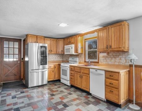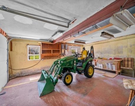 This sweet oversized Ranch was built and well maintained by the same family for many years. Step inside the front door into a grand living room with HW floors and stone fireplace. The living room opens to a large kitchen complete with walk-in pantry, root cellar (think wine room), and dining area with large bay window overlooking beautiful grounds. There are 3 generous bedrooms, all with HW floors, and a full bath featuring a separate soaking tub and shower stall. On the lower level there is a large, mostly finished family room with heat and AC, a separate workshop, and a second garage, also heated. Walk right out from here to the two-story barn which could house your cars, power equipment, woodworking tools, boat, and so much more. The barn is two full stories, and the possibilities are endless. Don't miss chicken coop, wood shed, garden, strawberry patch, red raspberry bushes, peach tree and apple tree and much more nature abound, all on one full acre.