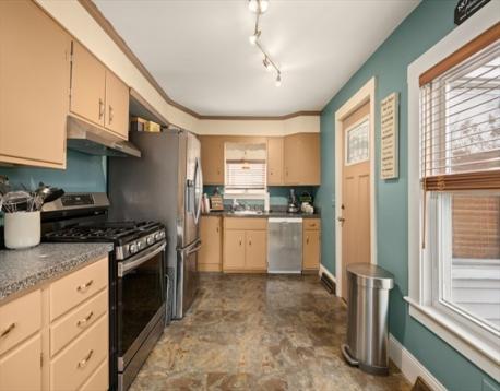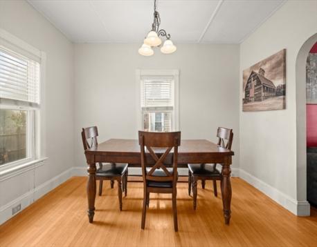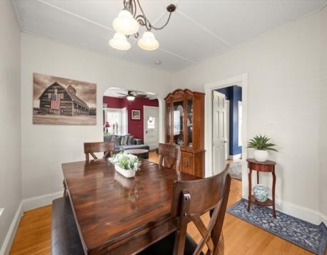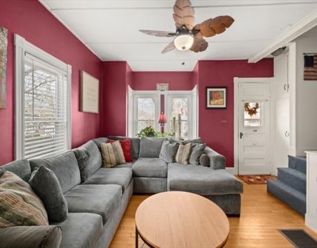 Charming antique Colonial located in a wonderful neighborhood! This move-in-ready home offers 3 bedrooms and 1.5 baths with classic character throughout. The first floor features a welcoming living room, dining room, and a country kitchen with stainless appliances and abundant storage, along with a half bath and first-floor bedroom. Hardwood floors, high ceilings, bullseye molding, and large windows add warmth and timeless appeal. Upstairs, you’ll find two additional bedrooms and a full bath. The home also features 5 yr old gas forced hot air heating, 2 yr old central air, and a less than 1 yr old roof. The low-maintenance yard provides the perfect space to enjoy the patio or spend time outdoors. Tucked away on a quiet side street in a friendly neighborhood where neighbors look out for one another, the location is hard to beat. Just blocks from the rail trail, schools, parks, and downtown shops and restaurants, with convenient access to major commuting routes.