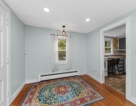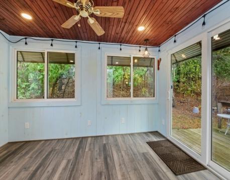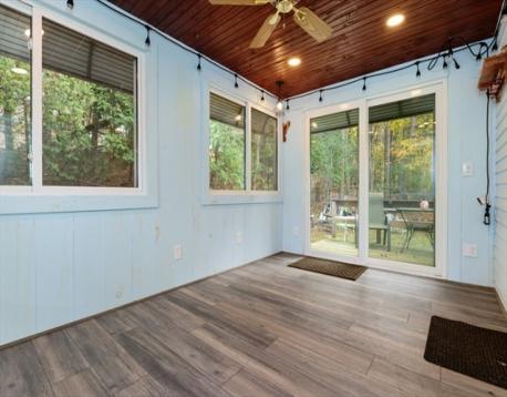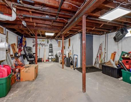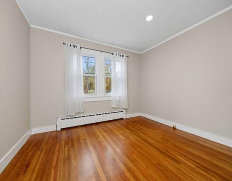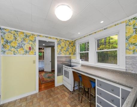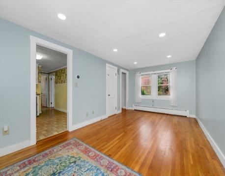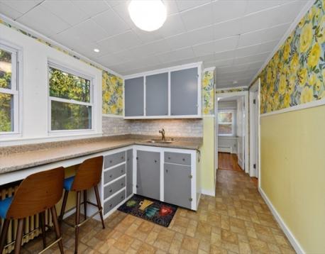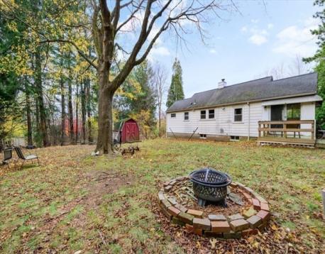 This two-bedroom ranch with hardwoods throughout, a charming three-season porch, and great frontage and driveway (if you have multiple cars to store) is centrally located, and on nearly two-acres of wooded lot! There is great natural light throughout; and its ample windows offer a forested view from every room! There is plenty of space for storage (or even a workshop) in the basement - with a bulkhead for ease of access. Each bedroom has a cedar closet and recessed lighting. Enjoy the trees while sitting around the fire pit in the backyard or, use more of the land to build something bigger!
