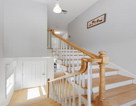 *Open House Sat & Sun 2- 3:30 pm* Welcome to this beautifully maintained townhouse that lives like a single-family home. Spanning three spacious levels, this bright and welcoming home offers comfort, style, and flexibility. The open main level features hardwood floors, a gas fireplace, and a seamless flow from the living room to the dining area and to the updated kitchen with granite counters, stainless steel appliances, and island seating. Sliders lead to a private deck, perfect for morning coffee or sunset dinners. Upstairs are two generous bedrooms, including a spacious primary suite with an en-suite bath and double vanity. The finished lower-level bonus room with slider access to the outside is ideal for an office, gym, or guest space. Freshly painted in 2023 with Nest thermostats, central air, in-unit laundry, attached garage, and deeded tandem parking. Set beside the rail trail and close to shops/dining, & major routes. *All Offers Due For Seller Review By 1 pm Tuesday*