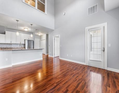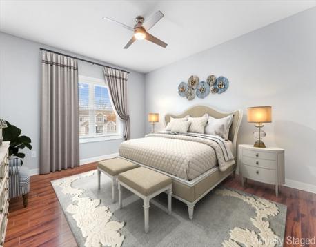 Welcome to The Residences at Rose Court, a sought-after pet-friendly Danvers community built in 2013. This top-floor townhouse condo features an open concept layout perfect for entertaining. The kitchen has granite counters, stainless steel appliances, and a large island. The living room has 18' cathedral ceilings and has a french door, with screen, to your private balcony with additional storage. The 1st floor primary bedroom suite includes a large custom walk-in closet and an upgraded tiled bath. The second 1st floor bedroom was used as a dining room and could also be a bedroom for guests or office use. A third bedroom is located on the second floor, with a large closet, and overlooks the living room. Enjoy in-unit laundry, gas heat, central air, custom window blinds, and ceiling fans. This home includes four deeded parking spaces—two covered (P233 & P242) conveniently located near the elevator, and two open (P070 & P071)—plus one of the largest storage unit in the building.