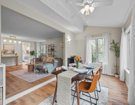Welcome home to this charming end-unit condo with an attached 1 car garage, situated in the sought-after River Run Community. Step inside to discover many thoughtful renovations, featuring high quality upgrades. The recently renovated kitchen boasts sleek cabinetry, quartz countertops, a stylish backsplash, and premium Bosch stainless steel appliances - including an induction cooktop - offering both quality and function. The spacious open concept layout seamlessly connects the living room and sunroom (bonus space), creating an ideal setting for entertaining or relaxing. Upstairs, the primary suite offers soaring ceilings, double closets, luxury vinyl flooring, and a stunningly remodeled ensuite full bath. Down the hall you’ll find a recently refreshed full bath, bright and spacious second bedroom, and a versatile loft-style third bedroom. The lower level provides a generous flex space and private patio. This opportunity offers comfort, convenience, and a move in ready townhome!