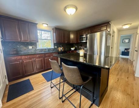 Nestled at 519 Maple Street, Danvers, MA, this single-family residence presents an inviting home, ready to move in and start creating memories. The heart of this home is undoubtedly the kitchen, designed for both culinary exploration and social gatherings; imagine preparing delicious meals on the stone countertops, utilizing the expansive kitchen island, and enjoying casual conversation at the kitchen bar while appreciating the elegant backsplash. The living room offers a comforting atmosphere, featuring a fireplace that creates a cozy focal point for relaxation and gatherings. The property extends its charm outdoors, where a patio and outdoor dining area await, promising delightful moments spent enjoying the fresh air and sunshine by the pool. The fenced backyard provides a secure and private space for relaxation and recreation, complemented by a shed for convenient storage. Just beyond the backyard gate find a path that takes you to the Preston playground.