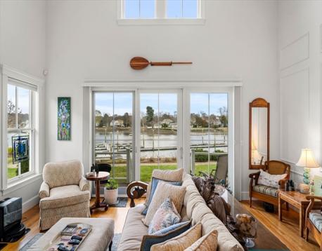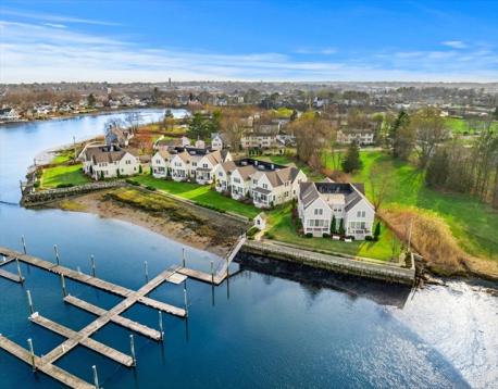 Begin each day with breathtaking views of the Danvers River from this exceptional waterfront end unit townhouse at Mariners Point. One of only two oversized residences, this rare offering features 9 foot ceilings on both levels, a desirable first floor primary suite, and a private two car garage with storage. Enjoy true riverfront living with your own private boat slip just steps from the home. The light filled interior showcases hardwood floors throughout, custom moldings, and refined craftsmanship. The upgraded kitchen features new countertops, gas cooking with double ovens, a wine chiller, and generous cabinetry. The first floor primary suite offers a private bath and nearby laundry. Upstairs are two spacious bedrooms, a renovated guest bath with soaking tub, and a versatile loft overlooking the dramatic two story great room and water views. A rare opportunity to own a premier waterfront retreat