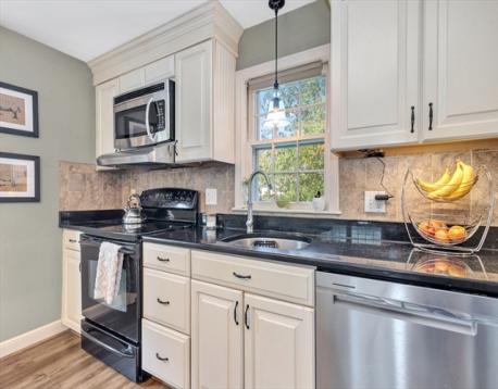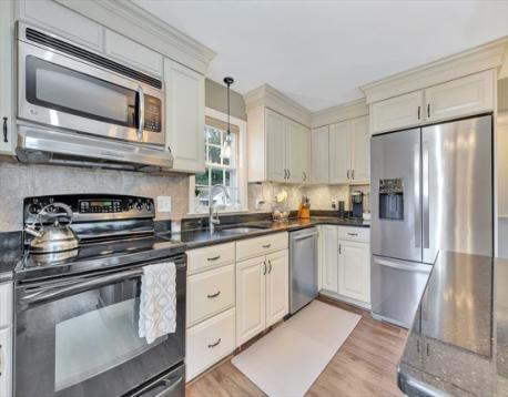 Tucked away at the end of a private quiet cul-de-sac, this beautiful 4-bedroom home offers the perfect blend of modern updates and classic charm. The renovated kitchen features stainless appliances, granite countertops, custom wood cabinetry, luxury vinyl plank flooring, and a granite island with storage and seating — ideal for both everyday meals and entertaining. The front-to-back living room, anchored by a cozy fireplace, opens to a bright four-season sunroom — the perfect spot to take in the serene forest views. Upstairs, you’ll find four good sized bedrooms and a full tile bathroom, while a half bath is on the first floor. Step outside to your private backyard oasis, featuring two beautiful patios, ideal for relaxing or entertaining around the fire pit. Additional highlights include hardwood floors and A/C throughout, an over-sized garage with a workshop area, shed, irrigation system, and a private wooded lot. The sale includes an additional adjacent lot, ask agent for details.
