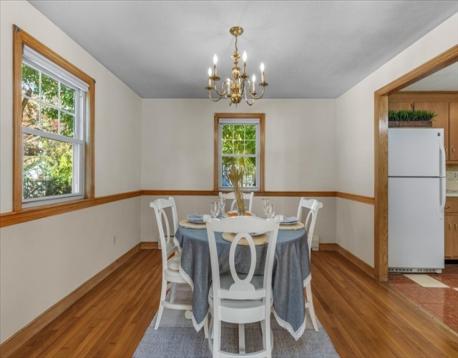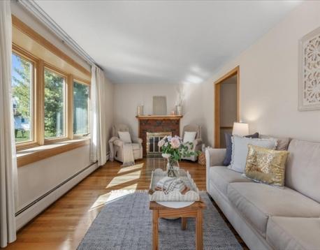 Step through the front door of this special, Colonial style home and experience warmth, light, and charm! Take in some of the home's most endearing features including the bright and sunny living room, the beautiful bay window, and the hardwood floors that have been lovingly maintained. Upstairs, you’ll find a mini-split AC unit and 4 spacious bedrooms—each offering excellent closet space. The large, unfinished basement provides plenty of room for storage, hobbies, or future possibilities, while the level, fenced-in backyard is perfect for pets, play, and outdoor gatherings. Nestled on a quiet side street, this home offers the best of both comfort and convenience—just 1/3 mile to the Endicott train station, 1 mile to Route 95, and approximately 2 miles to both Legacy Place and Islington Center. Come and make this your Home Sweet Home!
