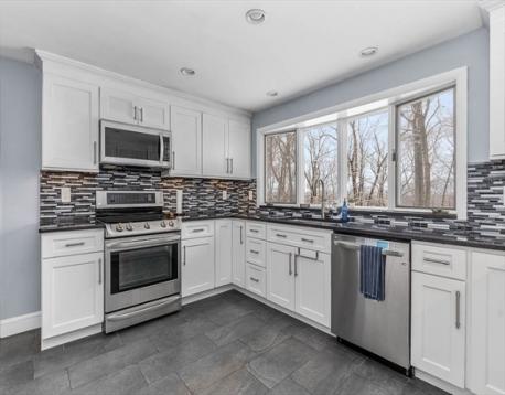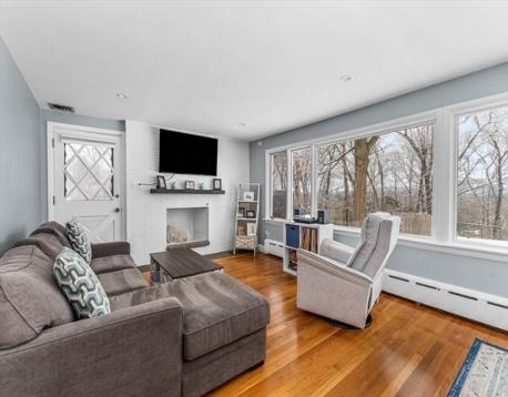 A room with a view? Coming right up! This pretty ranch features an open living room/dining room with a wall of windows providing a spectacular view of Blue Hills. And that's just for starters! Updated kitchen with stylish backsplash, granite countertops, stainless appliances and classic white shaker cabinets. A huge mudroom off the garage. Three well proportioned bedrooms with generous closets. An updated full bath. Plus a screened in porch to complete the main level. Downstairs, you'll find a recently finished basement with fantastic space to relax and hang out, a second full bath, an office, plus laundry and storage. Hardwood floors, central air, gas heat, attached one car garage. Living space thoughtfully designed to balance entertaining with functionality, open feel without sacrificing private enclaves. Super location convenient to commuter rail, Routes 128/95, Legacy Place and University Station. Don't miss out! Open House Saturday 11-12:30, Sunday 12-1:30