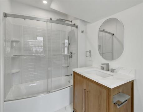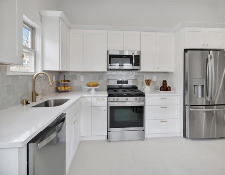 Tucked away on a quiet dead-end street, Everything has been renovated. Original Hardwood floors, refinished to look like new; New Walls, New Ceilings, Recessed lighting through out the entire first floor and finished basement. Featuring 3 bedrooms and 2 full baths, the layout is both functional and flexible with a first-floor bedroom and full bath, and two additional bedrooms on the second level. The main level showcases a beautifully updated kitchen with quartz countertops, white cabinetry, and brand-new SS appliances. The first-floor full bath features a stunning walk-in tiled shower and is conveniently accessible from both the living area and bedroom. Upstairs, you’ll find two additional bedrooms and a second full bath complete with a full tub. A finished basement, valuable bonus space ideal for a home office, gym, or extended living area, with direct access to parking for added convenience. Enjoy peace of mind with major updates including a brand-new roof, new gas furnace.