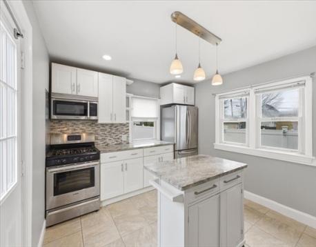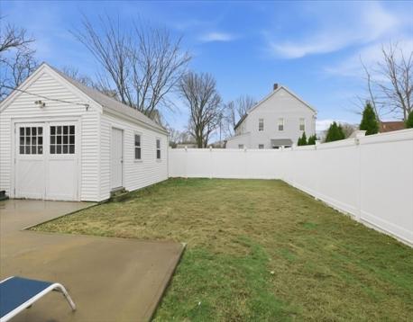 Charming side-entrance, hip-roof Colonial offering comfort, character, and thoughtful updates throughout! A welcoming 3-season front porch steps into a freshly painted interior with a cozy living room and dining area that seamlessly opens into a modern, fully applianced kitchen, ideal for everyday living and entertaining. Step outside from the kitchen’s side entrance to a patio and private backyard, complete with a new vinyl fence—perfect for gatherings, pets, or play. Hardwood floors add warmth and charm, while first-floor laundry (washer and dryer included) provides everyday convenience. 3 rooms up with a spacious primary bedroom. Additional highlights include electrical updates, a brand new furnace and condenser for central air, hot water tank (2022), and a rebuilt one-car garage perfect for a man-cave or she-shed! Dedham Village/Legacy Place and Condon Park/splash pad are nearby. Easy access to Routes 95/93 and public transit. Well-maintained and move-in ready. Welcome home!
