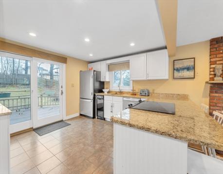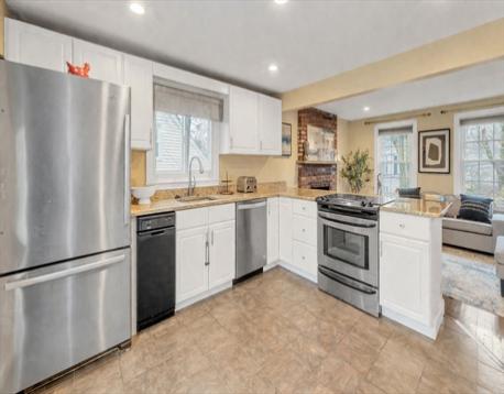 Located in the highly desirable Oakdale area, this picture-perfect Cape offers 3+ bedrooms, 2 full baths, and exceptional value for the neighborhood. The first floor features an open-concept kitchen that flows seamlessly into a warm and inviting fireplaced living/dining area, creating the perfect space for entertaining or everyday. A flexible den or optional fourth bedroom, a separate living room, and a full bath complete the main level. Upstairs, you’ll find three well-appointed bedrooms, including a spacious primary bedroom with generous closet space, along with another full bath serving the second floor. The garage-access basement includes a finished bonus area ideal for a playroom, home office, or recreation space, plus a dedicated laundry area with plenty of additional storage. Step outside to an oversized deck overlooking a large fenced-in backyard, offering great space for outdoor entertaining or relaxing. All of this in the sought-after Oakdale