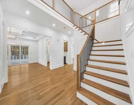 This stunning new construction home offers 4 bedrooms and 3.5 baths, beautifully tucked away on a private dead-end street surrounded by a wooded lot for exceptional privacy. The first floor is designed for both comfort and entertaining, featuring three fireplaces in the dining, living, and family rooms, along with a custom chef’s dream kitchen complete with stainless steel appliances, a scullery, walk-in pantry, and exquisite custom cabinetry. Upstairs, the spacious primary suite boasts two walk-in closets and a luxurious full bath, complemented by three additional bedrooms and a convenient second-floor laundry room. Ideally located just minutes from Dedham Square, Legacy Place, and major highway access. Walking distance to Dedham Country Day school. This home seamlessly blends elegance, functionality, and convenience.